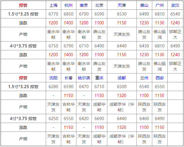 7 5月11日管材價格:漲勢依舊; 今管材價格仍在上漲,幅度集中在100-400之間,尤其焊管漲勢明顯,鋼廠積極上行調(diào)整,現(xiàn)貨心態(tài)向好交投氛圍活躍。成本高走支撐,商家隨行堅挺操作但實際成交謹(jǐn)慎。預(yù)計短期管材市場將偏強運行。
