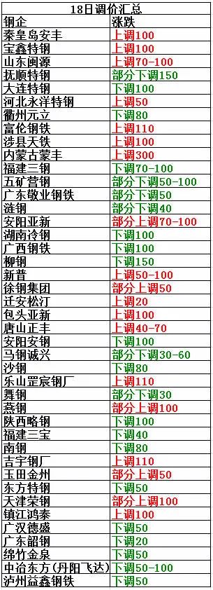 5月18日天津榮鋼部分上調100:鋼坯頭,圓鋼頭,火車輪3730,法蘭片3700,弓子板3690,優質一級3730,重a停收,特級破碎料3750,剪切料3150,鐵銷3180,鋼板料一級3730,軋廢3650,鋼筋切粒4030,不含稅