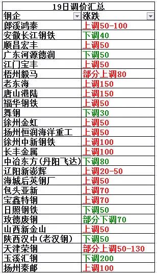 5月19日天津榮鋼部分上調(diào)50-130:鋼坯頭,圓鋼頭,火車輪3780,法蘭片3750,弓子板3740,優(yōu)質(zhì)一級(jí)3780,重a停收,特級(jí)破碎料3800,剪切料3250,鐵銷3230,鋼板料一級(jí)3780,軋廢3780,鋼筋切粒4100,不含稅