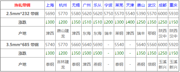 3 5月20日冷軋板卷價格:偏弱運行; 今全國冷軋寬幅下行,幅度150-550,熱卷期貨大幅下跌,重挫現貨市場,商家多恐慌性拋售,多以議價為主,然終端謹慎拿貨,仍觀望居多,市場實際成交較差;