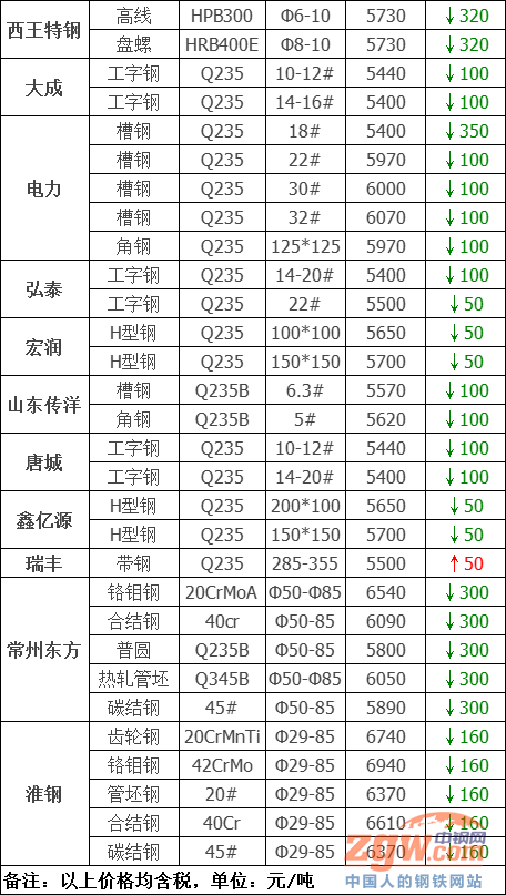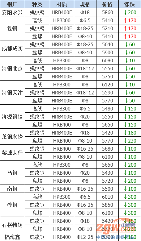 2021年5月21日鋼廠調(diào)價(jià)通知:調(diào)價(jià):跌350!漲170!30家鋼廠調(diào)價(jià)漲跌不一!