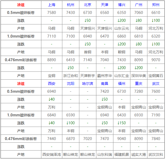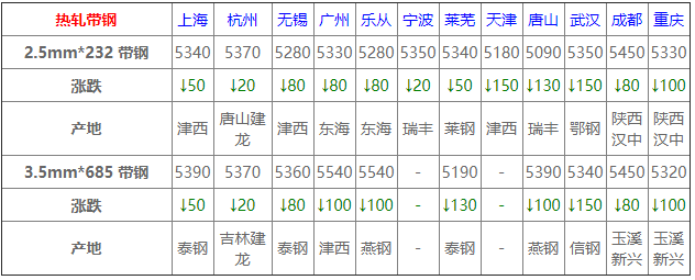 今全國帶鋼續弱整理,華北主導鋼廠降100-150,唐山窄帶累降230后低位好轉,盤中回漲100,部分出清日產,華東華弱勢調整;