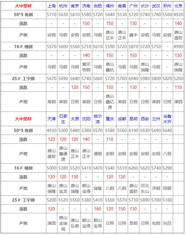 6月11日鋼鐵價(jià)格漲跌圖:主流上漲