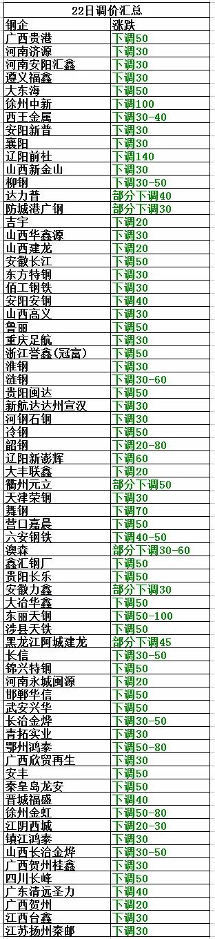 22日唐山廢鋼調(diào)價:重a3680-3740,花鐵壓塊3610-3660,鋼坯頭3710-3760,鋼板料3720-3770,鋼筋切頭3840-3890,沖豆3750-3800,馬蹄鐵3500-3550,模具鋼3710-3760,不含稅。