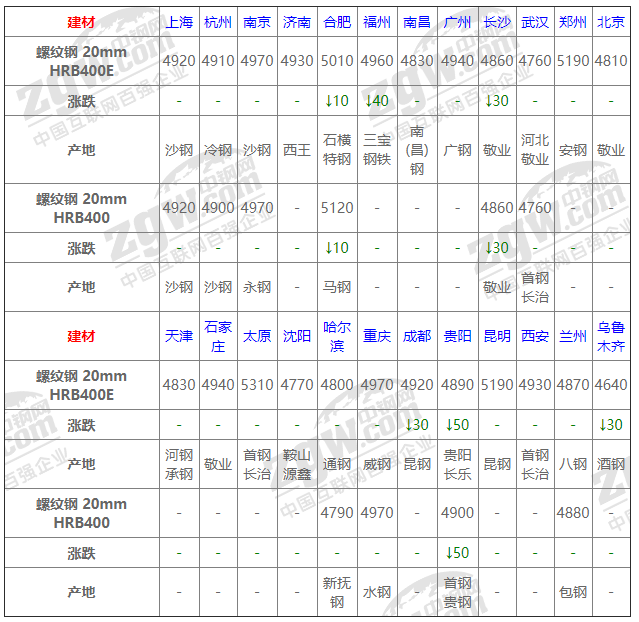 6月30日鋼鐵價格漲跌圖:主流下跌