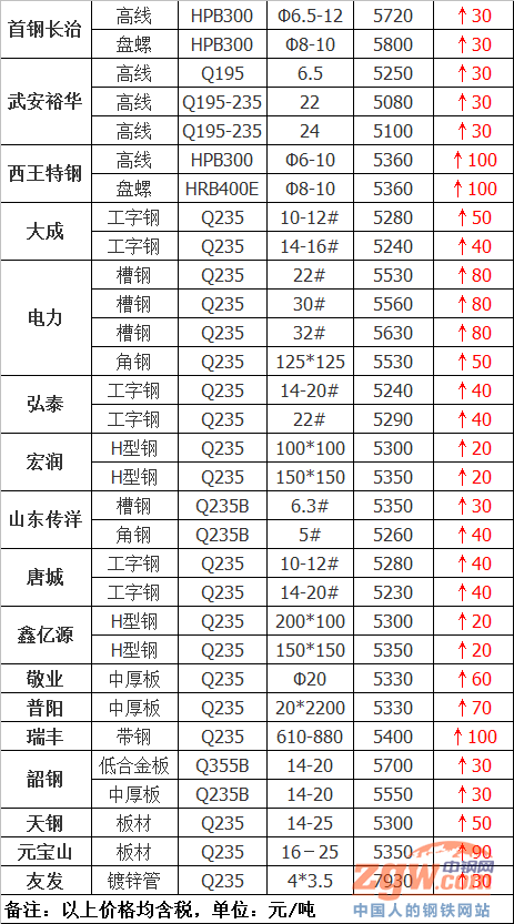 西王特鋼建材上調100元/噸
