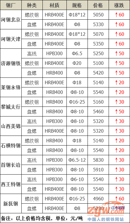 2021年7月9日鋼廠調價通知::調價:漲60!20家鋼廠最新價格變動!