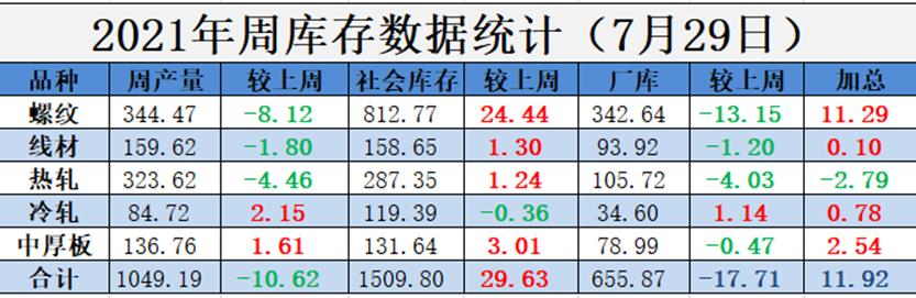 社會(huì)庫(kù)存上升29.63萬(wàn)噸,廠庫(kù)存下降17.71萬(wàn)噸,整體變化不大