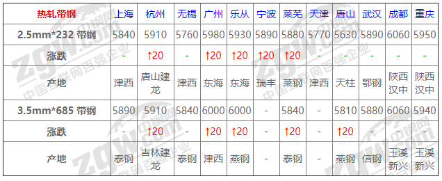 今全國熱帶價格小幅上漲運行,幅度20左右,商家心態(tài)謹慎,市場低位資源成交尚可,下游多隨采隨用,考慮上游帶鋼價格上移,預計明或窄幅整理為主;