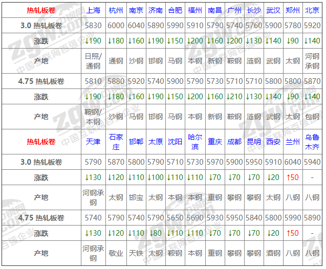8月2日鋼鐵價格漲跌圖:下行為主 8月2日建材價格:弱勢運行; 今建材弱勢運行,幅度20-110,上周五夜盤期螺大跌,今日開始期螺繼續低走,受此影響今日鋼材價格走勢均大幅下跌。受價格大幅下跌影響,成交明顯下滑。本周或延續弱勢行情,價格震蕩下行。 2 8月2日熱軋板卷價格:下行為主; 今全國熱卷下行為主,幅度20-210,期卷震蕩運行,市場補跌周末為主,市場詢價明顯增多,交投氛圍較昨有所好轉,商戶倒手增加,成交尚可;