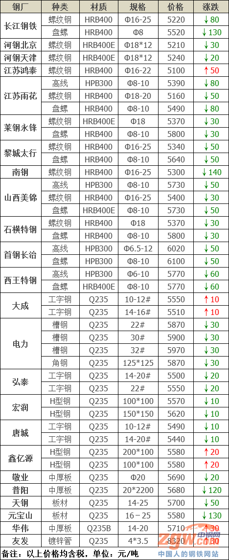 2021年8月4日鋼廠調(diào)價通知::跌140!漲50!25家鋼廠價格變動!