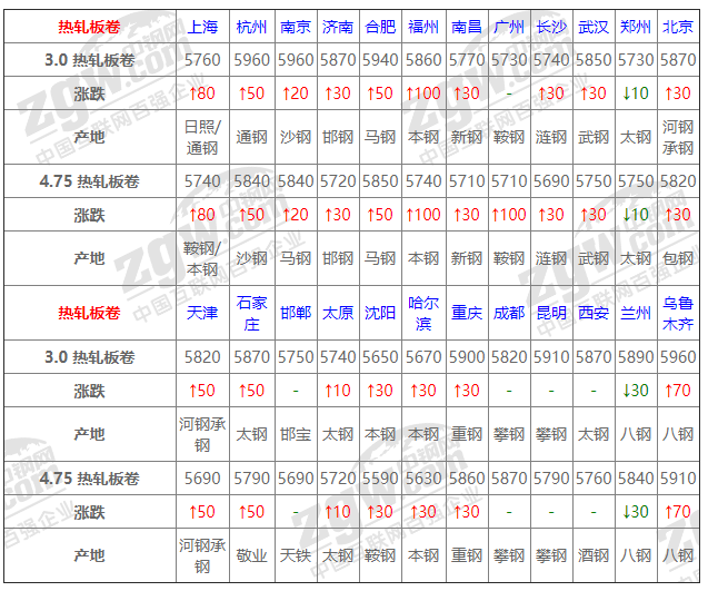 今全國熱卷上行為主,幅度10-100,期卷持紅上線,提振現(xiàn)貨市場心態(tài),商戶出貨積極性較高,下游詢價意愿較高,整體實際成交仍一般;