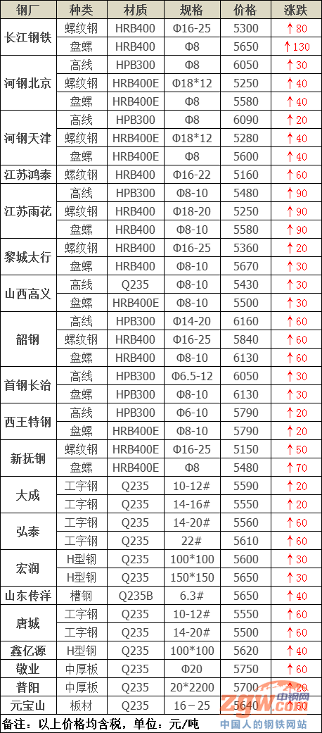 2021年8月5日鋼廠調價通知::漲130!26家鋼廠價格變動!