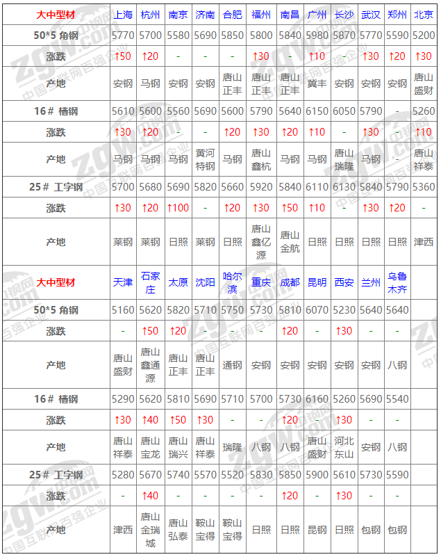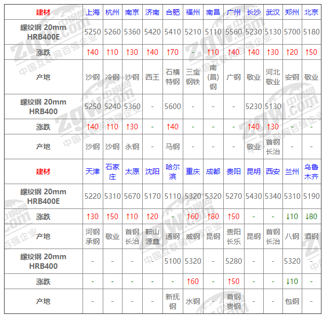 8月5日鋼鐵價格漲跌圖:穩中上漲
