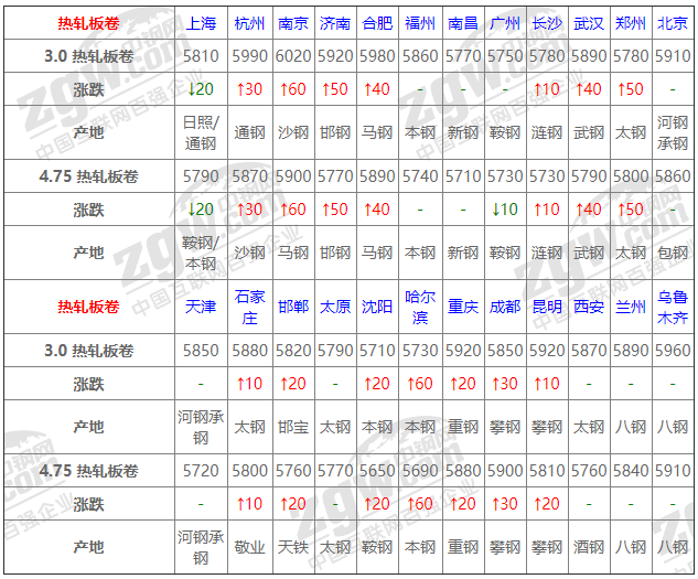 今全國熱卷上行為主,幅度10-60,期卷震蕩弱行,市場商戶操作不一,心態較為謹慎,高位成交乏力,低位成交未見明顯放量,市場整體成交偏弱;