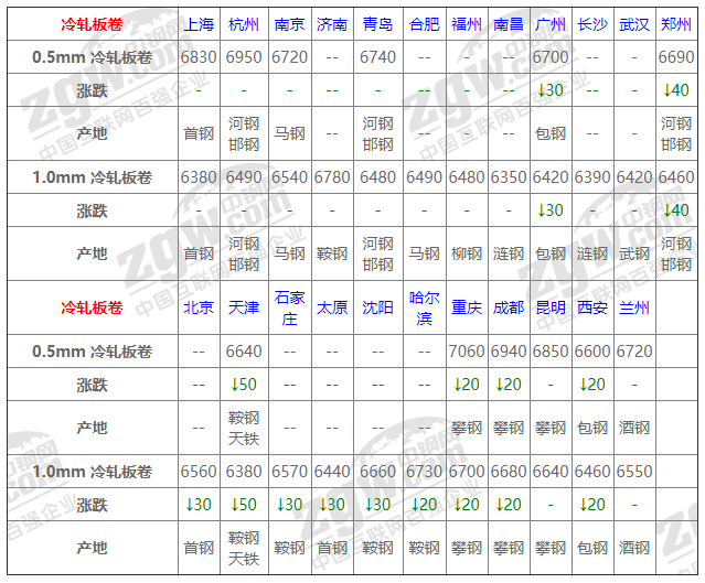 3 8月6日冷軋板卷價格:偏弱運行; 今全國冷軋偏弱調整,幅度20-50左右,昨夜期貨收盤狀況不佳,近日持續持紅震蕩,部分地區因疫情原因,運輸司機不愿出車,市場需求大幅減弱;
