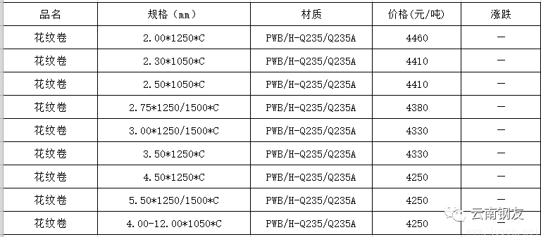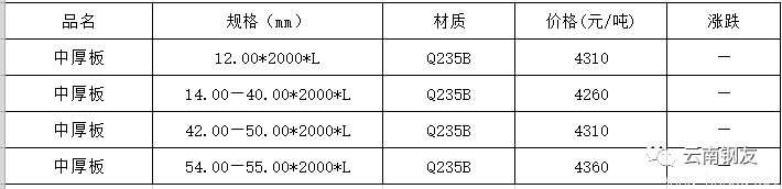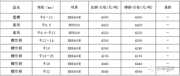 1、以上列表產(chǎn)品鋼廠/產(chǎn)地為:云南本地