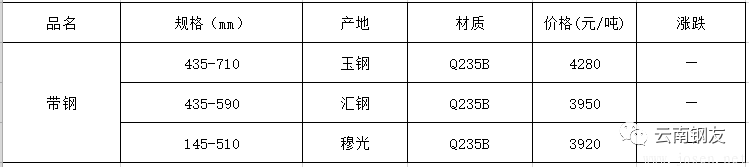 22日昆明市場(chǎng)帶鋼暫穩(wěn)觀望,具體如下(磅計(jì)):