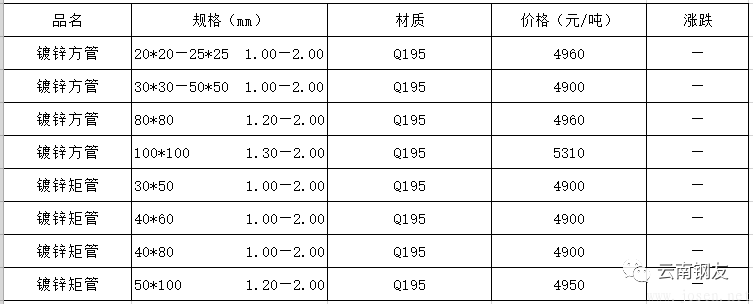 22日昆明市場(chǎng)鍍鋅方矩管價(jià)格暫穩(wěn)觀望,具體如下(過(guò)磅):