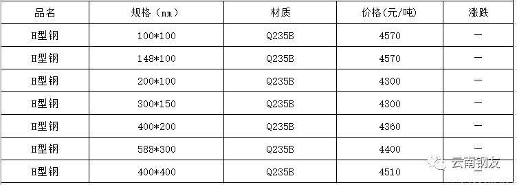 22日昆明市場(chǎng)H型鋼價(jià)格暫穩(wěn)觀望,具體如下(理計(jì)):