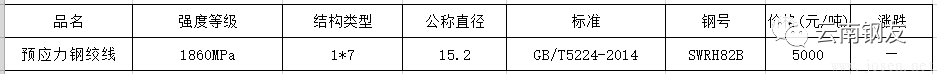 22日昆明市場(chǎng)預(yù)應(yīng)力鋼絞線價(jià)格暫穩(wěn)觀望,具體如下(抄牌):