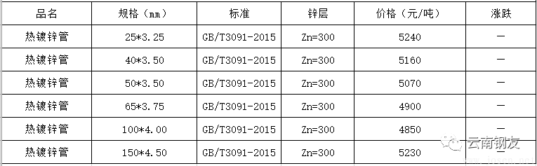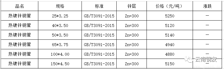 22日昆明市場(chǎng)熱鍍鋅鋼管價(jià)格暫穩(wěn)觀望,具體如下(過(guò)磅):