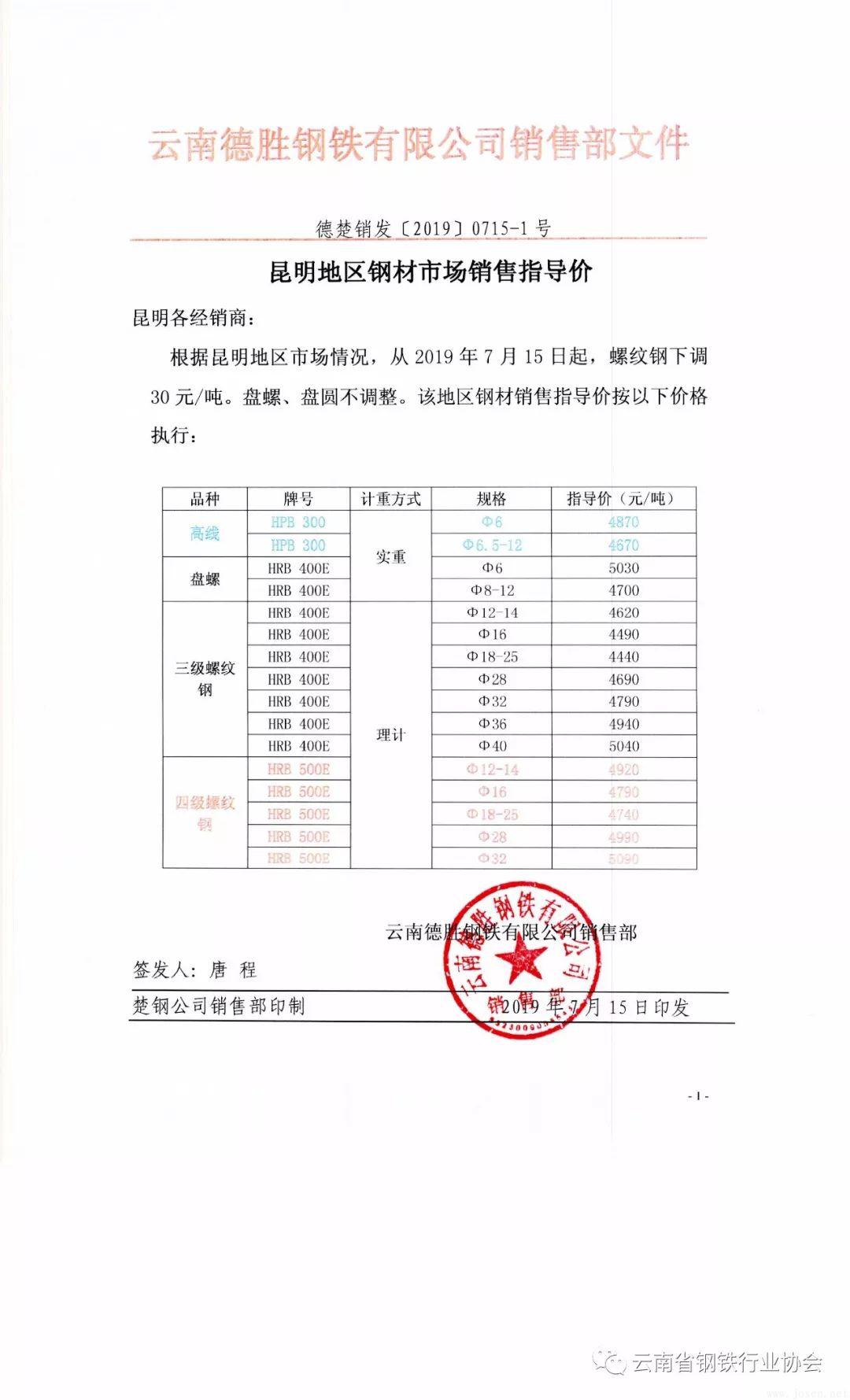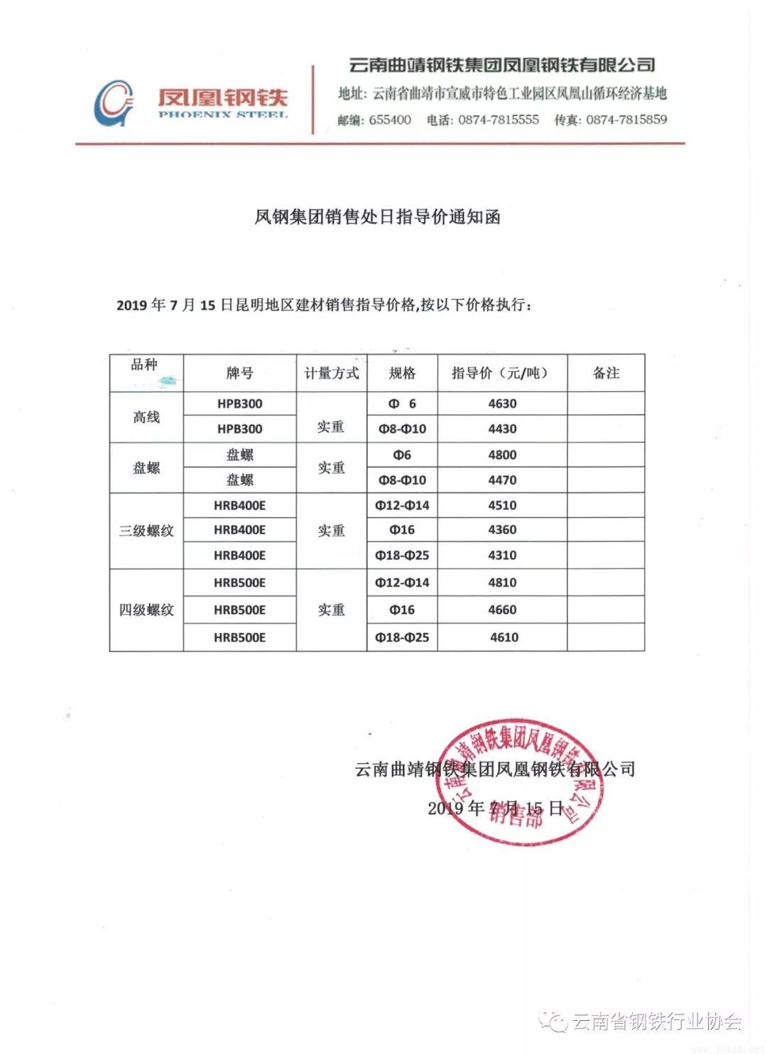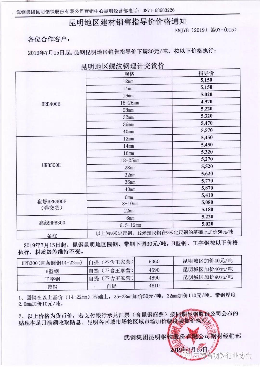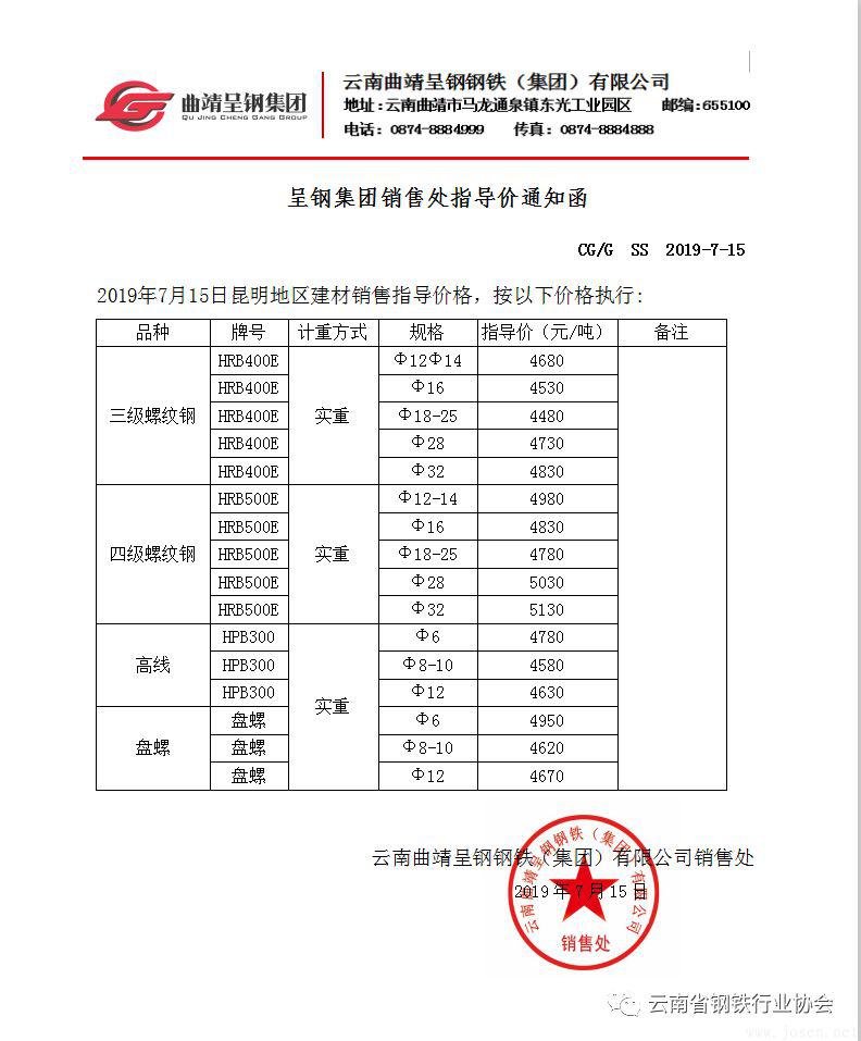 1、以上表列產(chǎn)品鋼廠/產(chǎn)地為:云南本地;