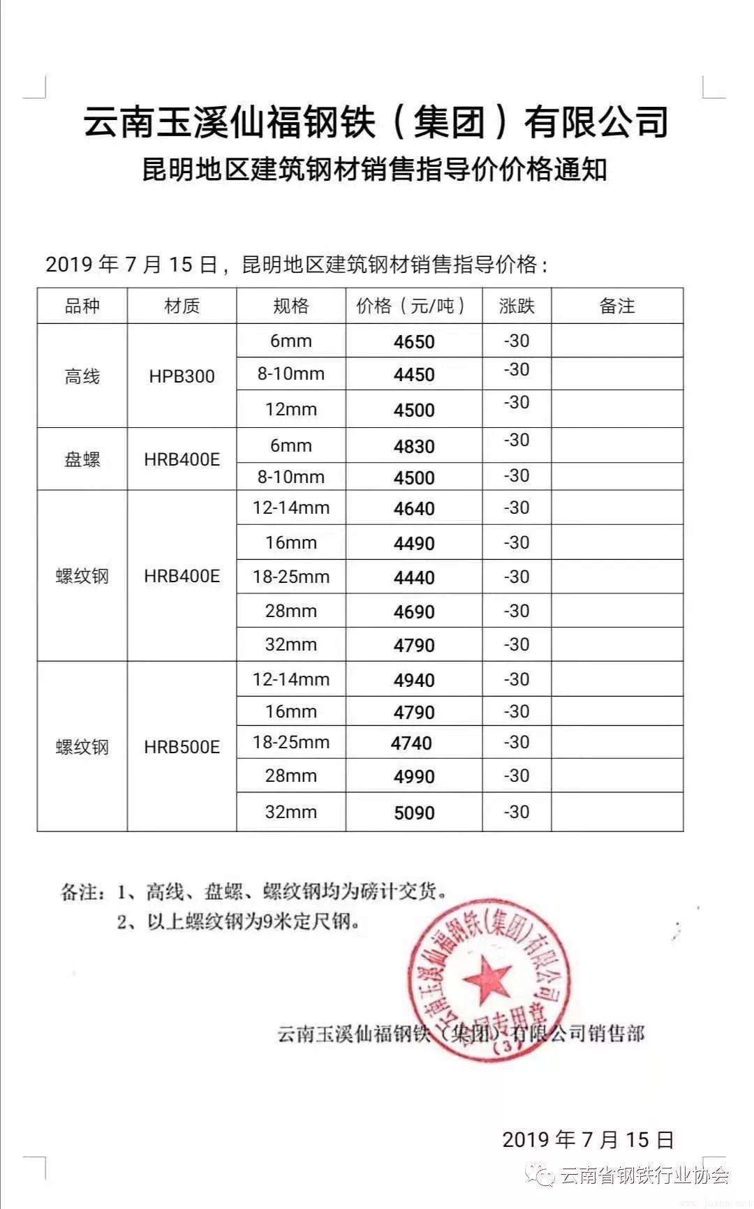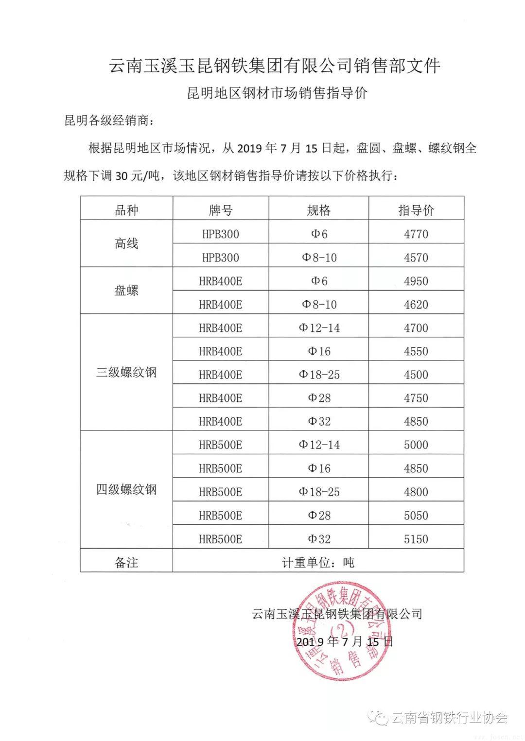 云南省各鋼廠市場(chǎng)指導(dǎo)價(jià)匯總: