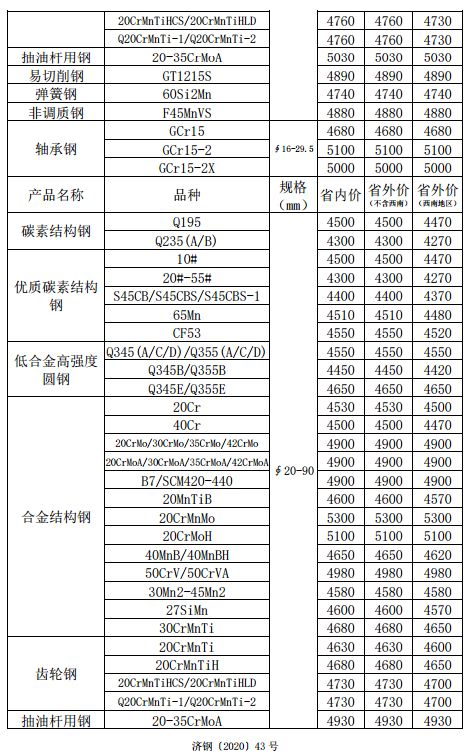 大邑512廠通知:經公司領導研究決定,暫停廢鋼收購業務,待疫情全面得到控制,徹底取得決定性勝利后重新啟動廢鋼收購業務。鋼筋顆粒2640,鋼筋節、特級重廢10厚以上2440,重廢6厚以上2360,中廢4-6厚2330-2350,輕廢2-4厚2240-2330,生鐵2360(50公分內),3厚破碎料2210,大粗2210,中細混合2160-2040厚薄混裝降低,加工廢另算。
