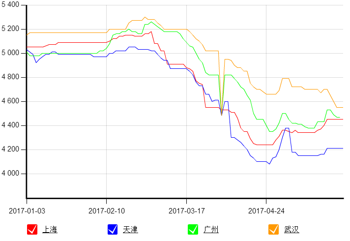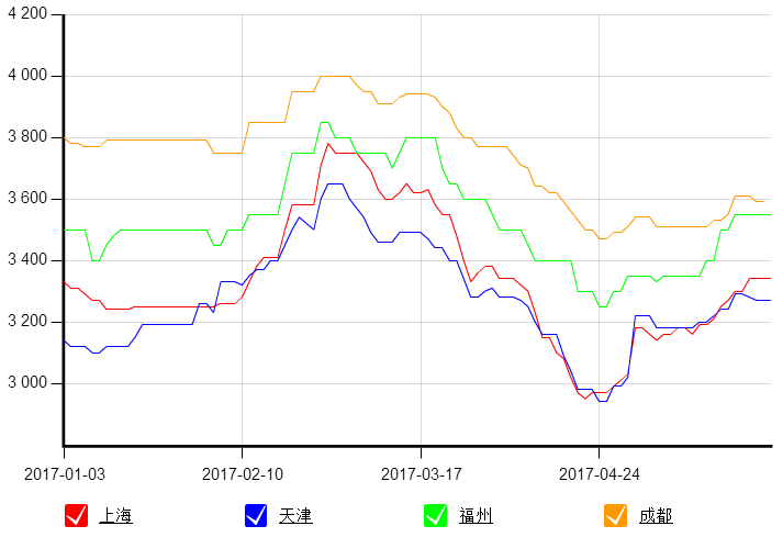 2017年1月1日~5月27日主流品種價(jià)格走勢(shì)