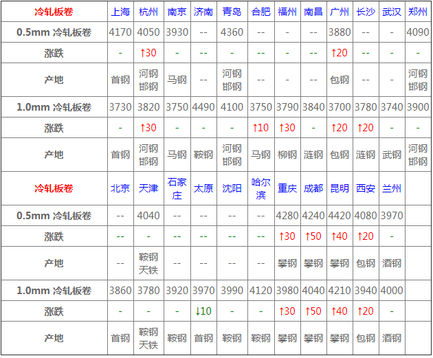 今日冷軋板卷價格上調,近日期貨盤面偏強運行,給低迷已久的市場帶來不小提振;