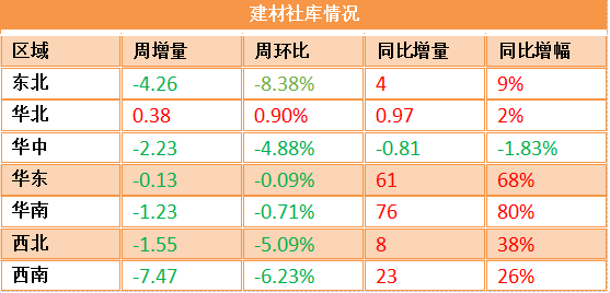 區域降庫分化,建材降庫普遍放緩