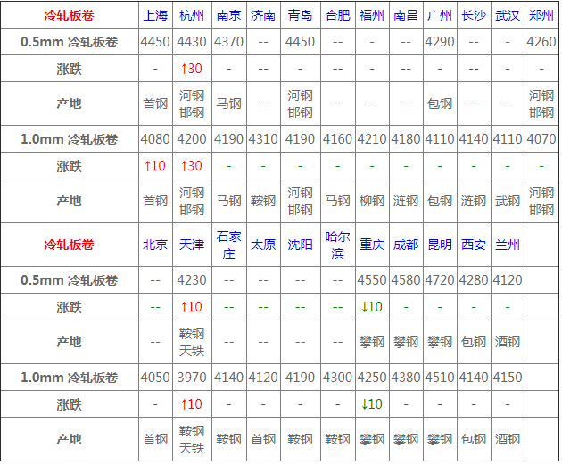 期鋼盤面翻紅震蕩,提振市場心態,實際成交量尚可,市場詢盤氛圍不錯,因庫存量少商家進行價格調整,交投謹慎,現貨資源較為分散,商家操作上仍以直發出貨為主,預計明日帶鋼價格或穩中個漲,調整幅度有限。