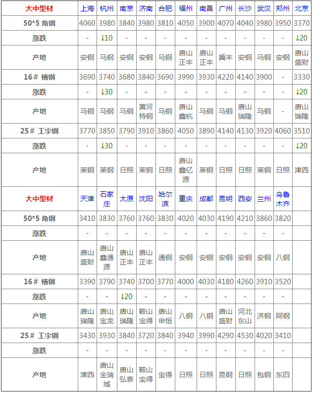 Periquito 三個礦區)生產,該舉將影響淡水河谷至少10%的產量。 1 6月8日建材價格:穩中小漲10-20元/噸; 今建材價格主流偏強,早盤期螺持紅震蕩,加之鋼坯端今晨拉漲20提振市場信心,普遍跟隨上調10-20左右。漲后市場交投氛圍平平,商戶心態普遍觀望為主,下游用戶對高位接受有限。考慮成本端堅挺,建材價格繼續小漲為主。 2 6月8日熱軋板卷價格:觀望整理10-20元/噸; 今日熱卷現貨主流上行,全國66.67%主流城市調漲,漲幅10-50元/噸,其中天津地區熱卷價格趨高20左右報價3680-3700。熱卷商家雖積極拉漲,但下游采貨商家并未買賬,多謹慎觀望,短期熱卷市場高位盤整。 3 6月8日冷軋板卷價格:盤整運行; 今日冷軋市場主穩運行,商家調價謹慎。據了解,今天期貨與鋼坯上行,目前商家心態謹慎樂觀為主。不過高價位同樣導致下游客戶拿貨的積極性有所減退,價格持續上漲市場接受度較低。短期冷軋卷板價格盤整觀望。 4 6月8日中厚板價格:堅挺運行; 今中厚板現貨價格小幅偏強。從了解的情況來看,主要受期鋼拉漲提振,然終端用鋼需求有限,漲后成交整體一般,大戶商家逢高積極出貨。受成本鐵礦石價格上漲帶動,且黑色系期螺高開高走,商家心態積極,鋼坯市場交投向好支撐商家盼漲心態增強,短期內中厚板或高位堅挺運行。 5 6月8日熱帶價格:堅挺整理10-20元/噸; 今熱帶市價主流偏強,因北方行情上漲且鋼坯端堅挺運行,貿易商報價普遍偏堅挺。從商戶口中得知,市場成交表現疲軟,商戶操作隨行就市,終端用戶剛需為主。考慮北方行情偏強,故預計短期帶鋼價格或堅挺整理。 6 6月8日型材價格:穩中調整10-30元/噸; 今型價穩中趨漲。需求釋放不濟,但鋼坯支撐上揚,市場挺價意愿漸濃,中間商補庫積極性尚可,短期型價將小幅偏強調整。 7 6月8日管材價格:堅挺偏強; 原料端強勢上漲,提振市場心態,管市價格主流拉漲,目前市場需求不大,整體成交表現一般偏弱,僅個別大廠能維持正常出貨量,市場詢價多拿貨謹慎,觀望情緒仍濃,考慮原料端支撐強勁,預計后市管材價格堅挺偏強運行。