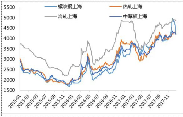 2017年12月份,國內(nèi)鋼材市場總體表現(xiàn)為弱勢運(yùn)行,給大家的感覺似乎是市場下跌得很多,實(shí)際上主要是前期漲幅較大的螺紋、線材出現(xiàn)回調(diào),中板與上月基本持平,熱軋、冷軋、鍍鋅和彩涂板價(jià)格不僅沒有下降,相反卻出現(xiàn)一定幅度的回升。