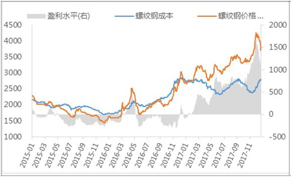 2017年11月底以來,原材料市場在市場參與者普遍看空的預(yù)期下不降反升。12月份,不管是煉焦煤、焦炭、鐵合金,還是鐵礦石,其表現(xiàn)均比鋼材要強(qiáng)。由于鋼廠原材料采購和鋼材銷售之間通常有1個(gè)月左右的時(shí)間差,2017年12月份原材料價(jià)格的上升將使鋼材的生產(chǎn)成本上升,對鋼價(jià)的支撐力度也相應(yīng)上升。