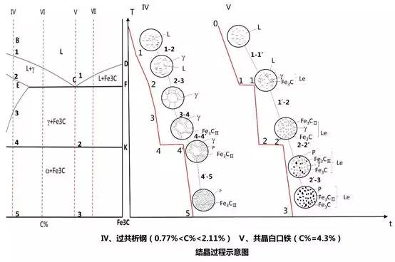 接下來(lái)讓我們們看一下含碳量不同的液相的析晶過(guò)程: