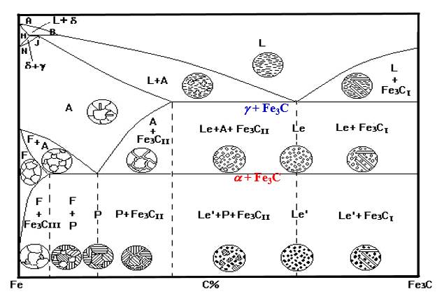 Fe-C合金相圖實(shí)際上是Fe-Fe3C相圖,鐵碳合金的基本組元也應(yīng)該是純鐵和Fe3C。