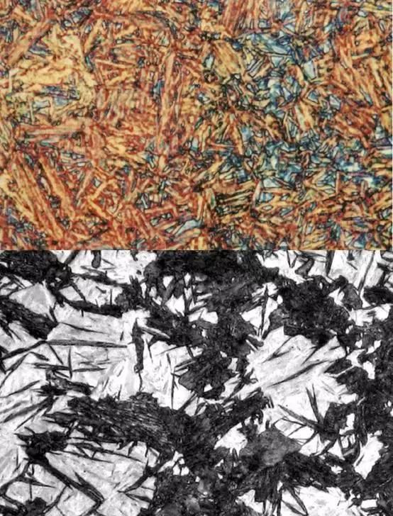 無(wú)碳化物貝氏體:板條狀鐵素體單相組成的組織,也稱為鐵素體貝氏體;形成溫度在貝氏體轉(zhuǎn)變溫度區(qū)的最上部。