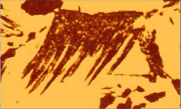 特征:典型上貝氏體呈羽毛狀,晶界為對(duì)稱軸,脆性,硬度較高;